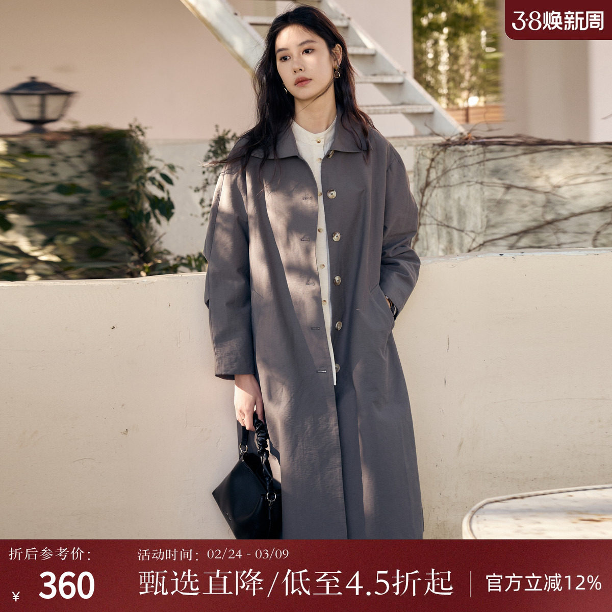 西町村屋长款风衣外套女装春季新款英伦风高级百搭上衣HA9201003