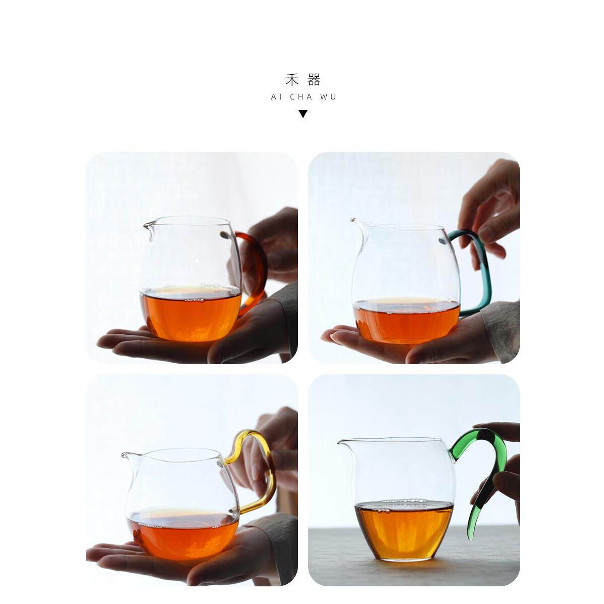 禾器茶具玻璃晶彩淡澄泰轩怡然带把公道杯茶海分茶器茶盅功夫茶道