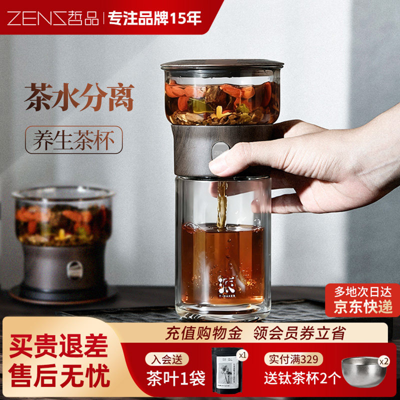 哲品派杯茶水分离杯便携式旅行茶具玻璃快客飘逸杯办公室泡茶神器