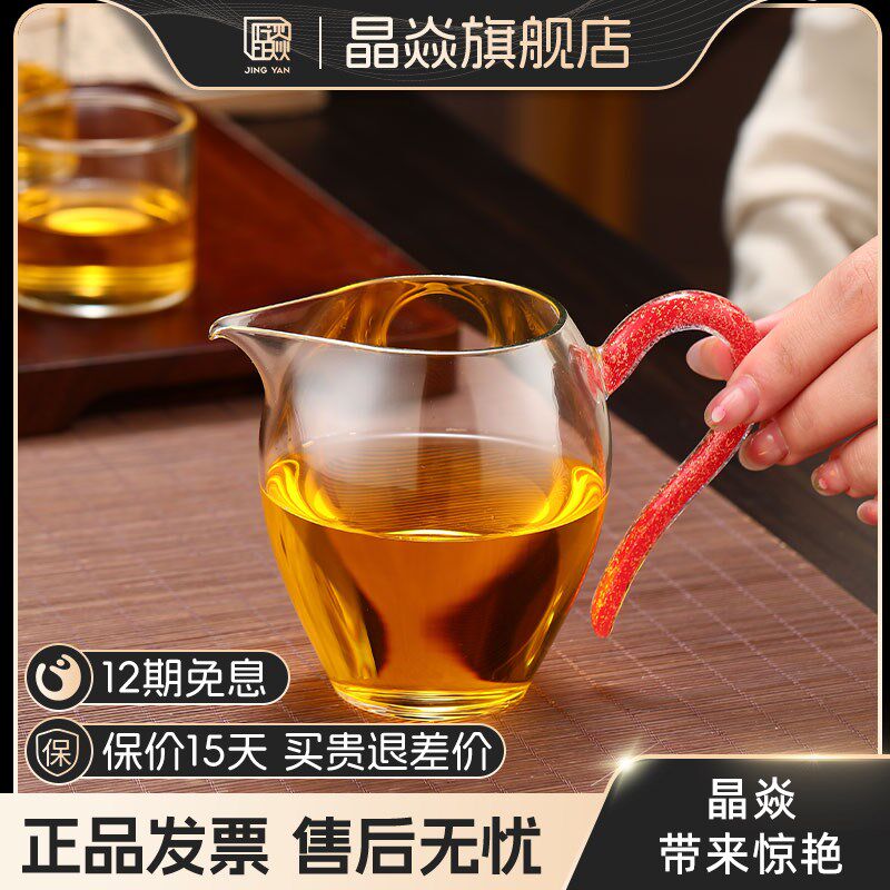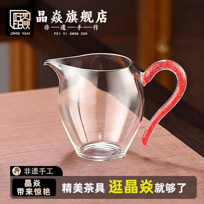 晶焱红金公道杯描金款高档茶具玻璃公道杯家用茶具大容量透明精致