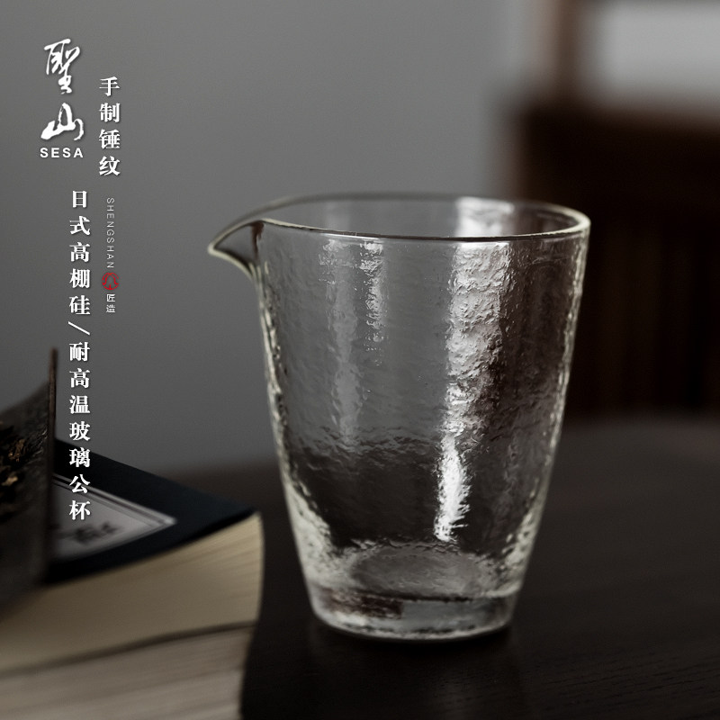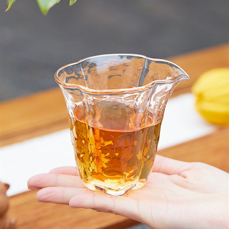 锤纹海棠花玻璃公道杯高硼硅分茶器手工创意功夫茶具玻璃均杯茶海