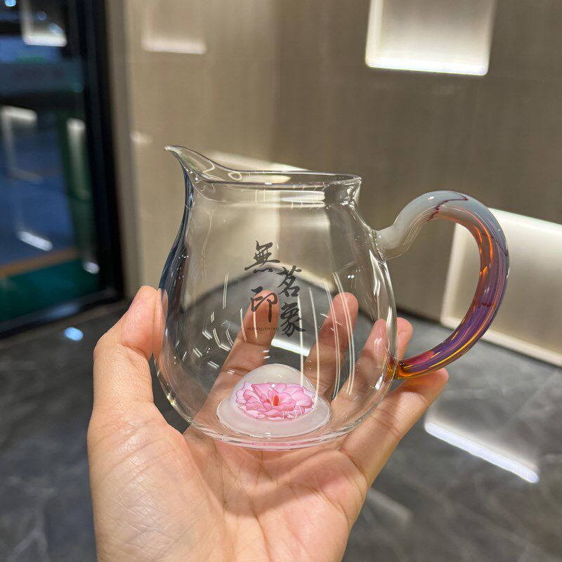 海棠冰晶玻璃公道杯耐热耐高温分茶器琉璃茶道功夫茶具玻璃公道杯