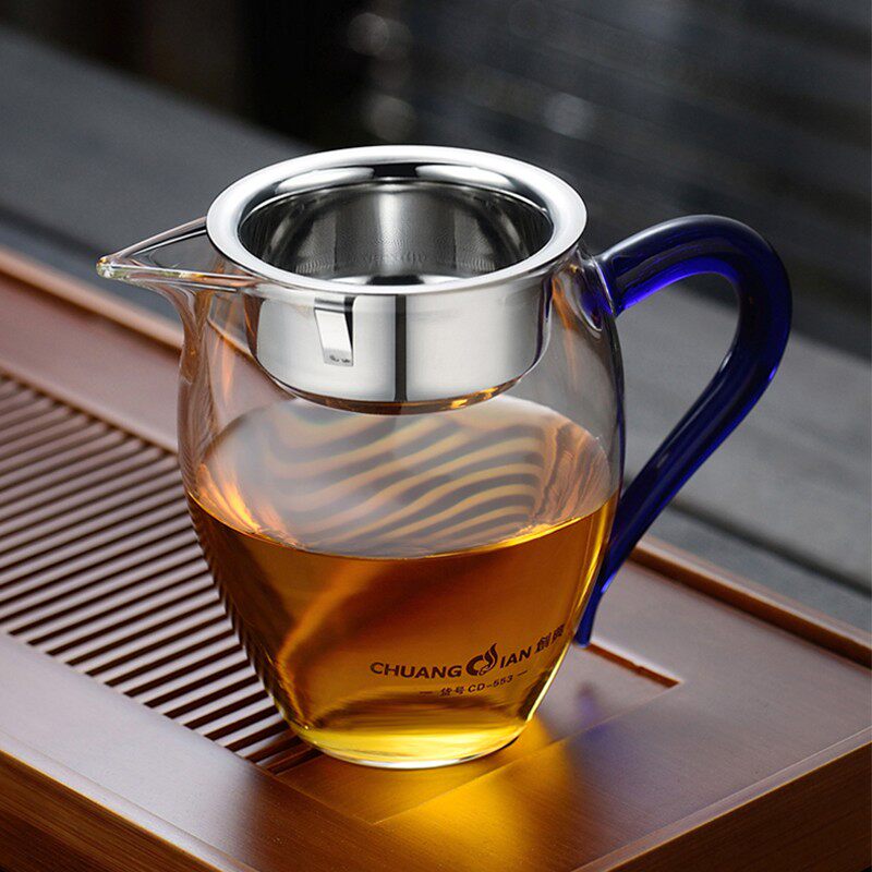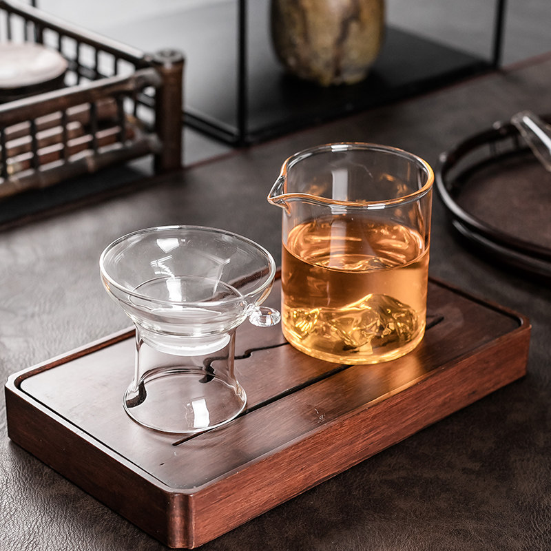 加厚耐热温高硼硅玻璃公道杯茶漏过滤网茶具茶海大小号公杯分茶器
