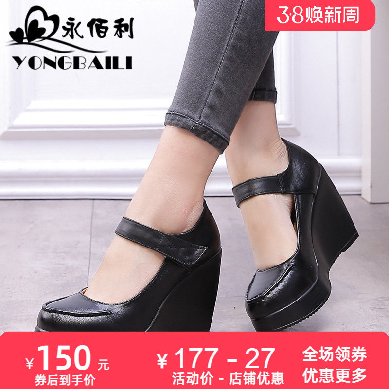 真皮单鞋女复古坡跟防水台高跟奶奶鞋女2026春新款粗跟单鞋女百搭