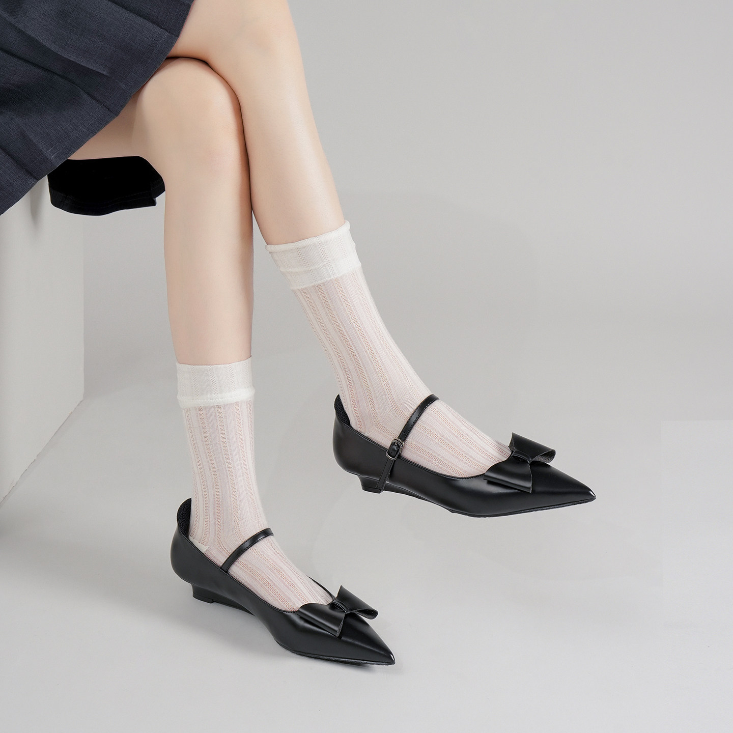 法式性感尖头蝴蝶结坡跟单鞋女2026春季新款绝美浅口不累脚高跟鞋
