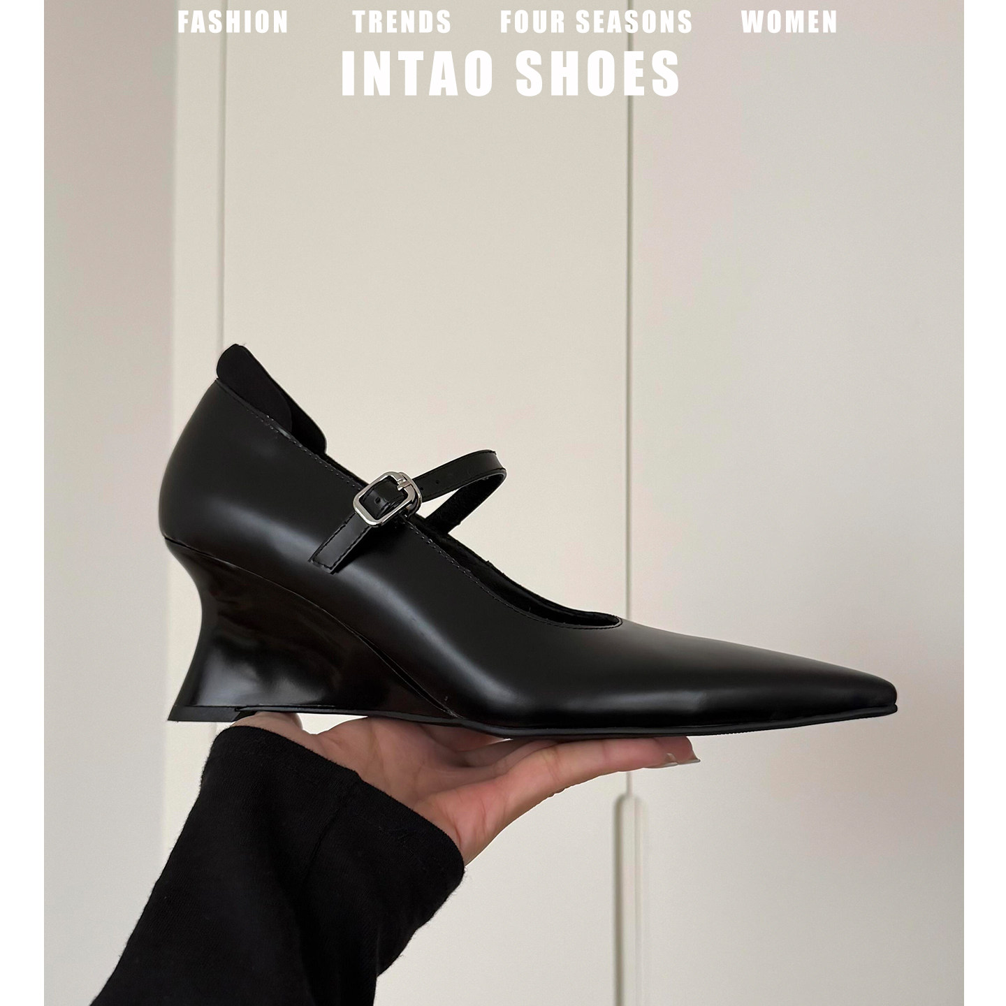 Colorful Bridge丨Crucifix十字架系列 黑色坡跟高跟鞋女士单鞋