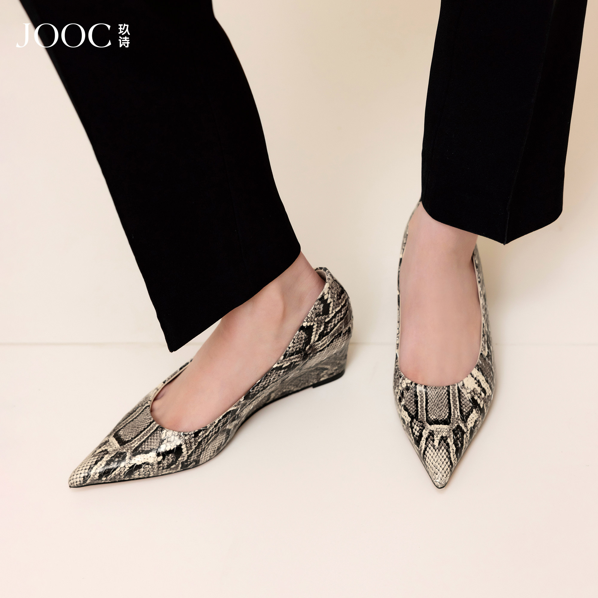 【狂野秀场】JOOC玖诗蛇皮复古气质高跟鞋女2026春季新款坡跟单鞋