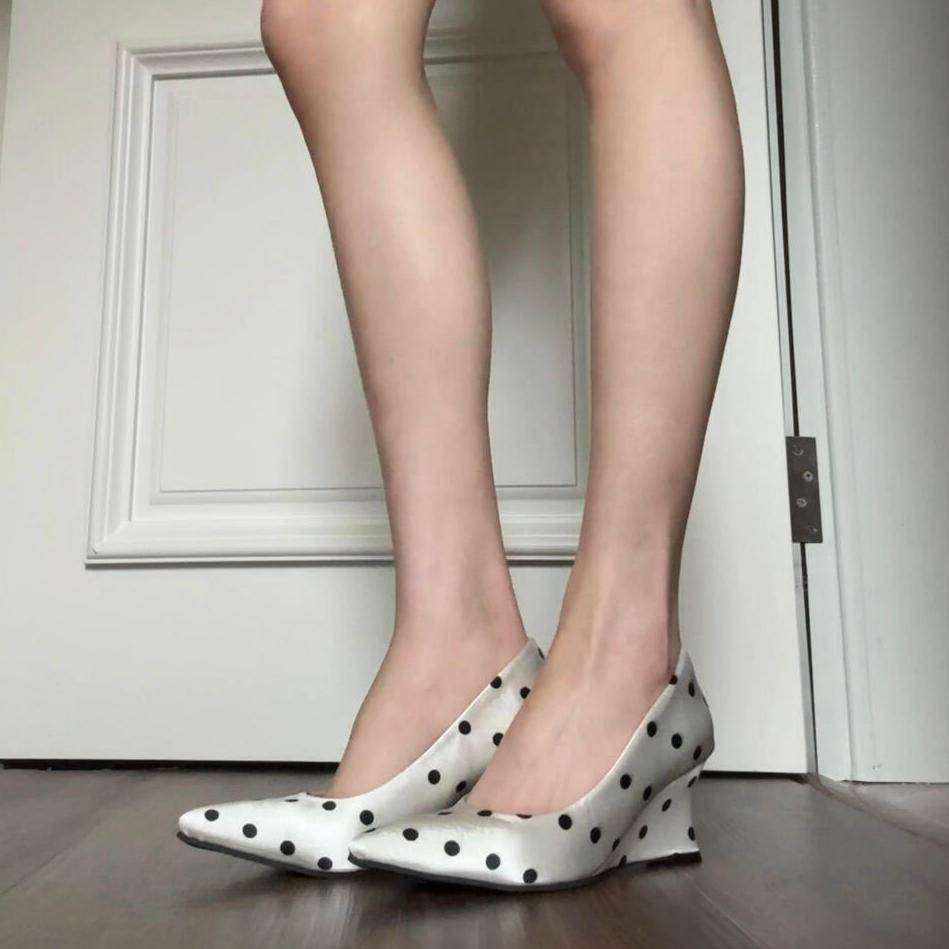 法式甜美波点尖头坡跟单鞋女2026春夏新款白色绝美气质浅口高跟鞋