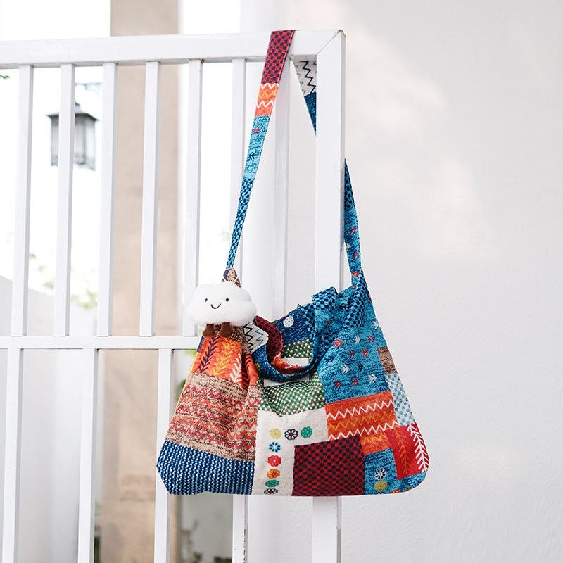 氧气种子小众原创女包几何撞色斜挎包波西米亚风布包单肩包度假风