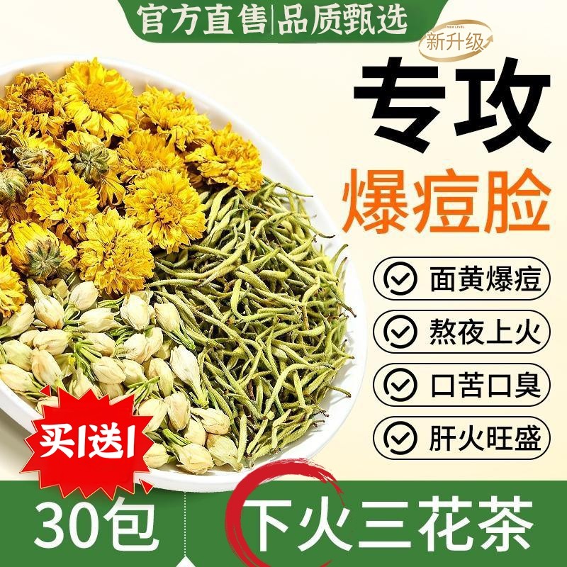 金银花茉莉菊花三花茶包上火清解热祛痘养肝护去肝火降毒排养生茶