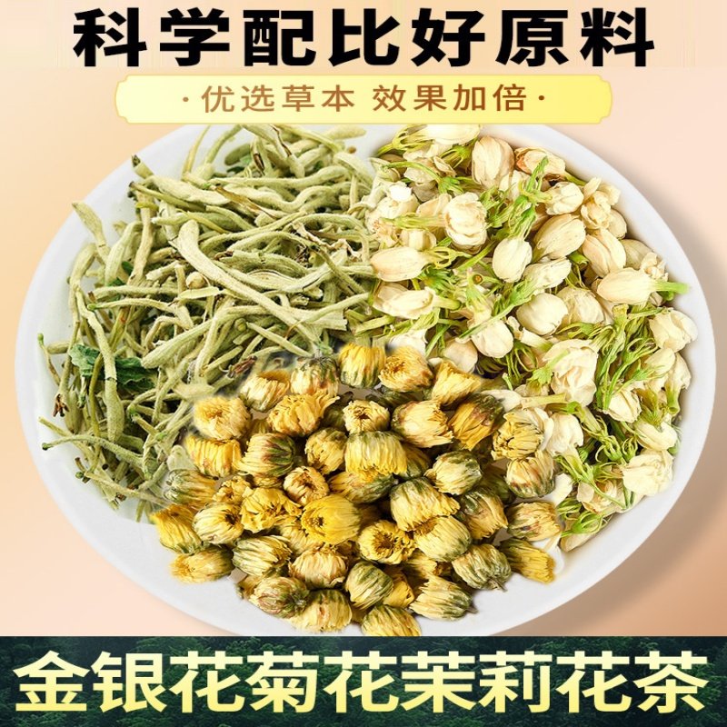 金银花茉莉菊花茶上火清解热去肝火三花茶祛痘养肝护降毒排养生茶