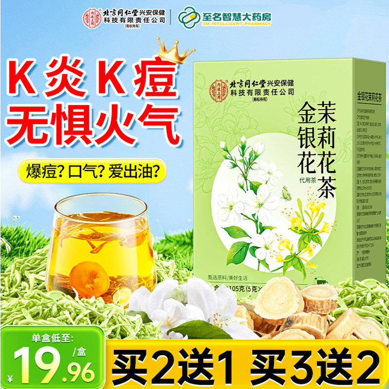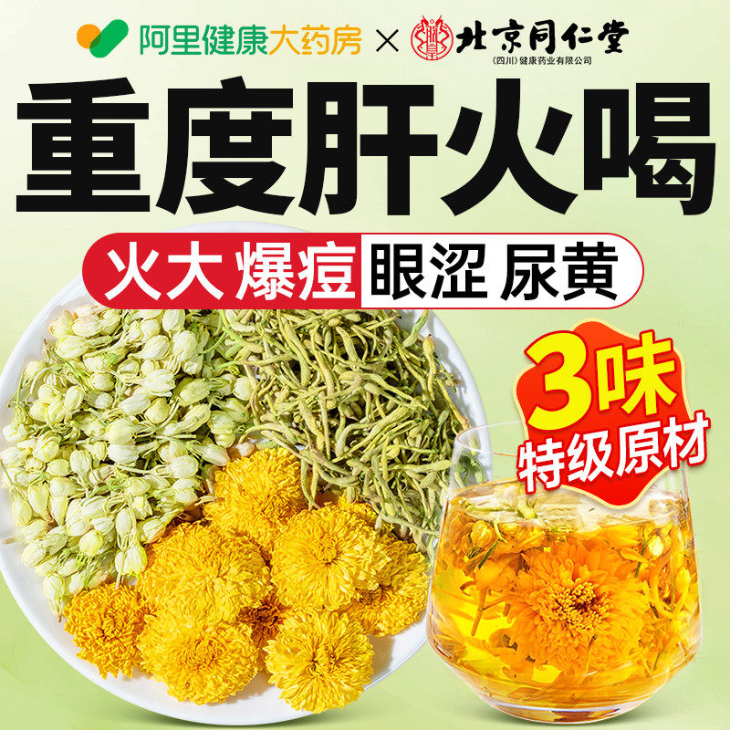 同仁堂金银花茉莉菊花茶上火清热解三花茶去肝火祛痘毒排养生茶包