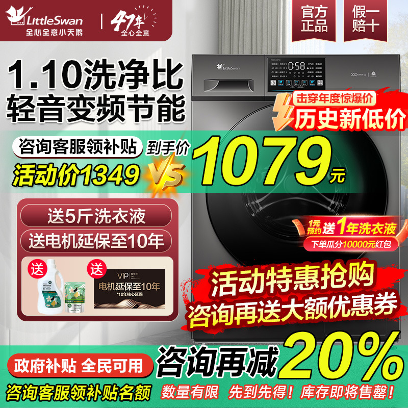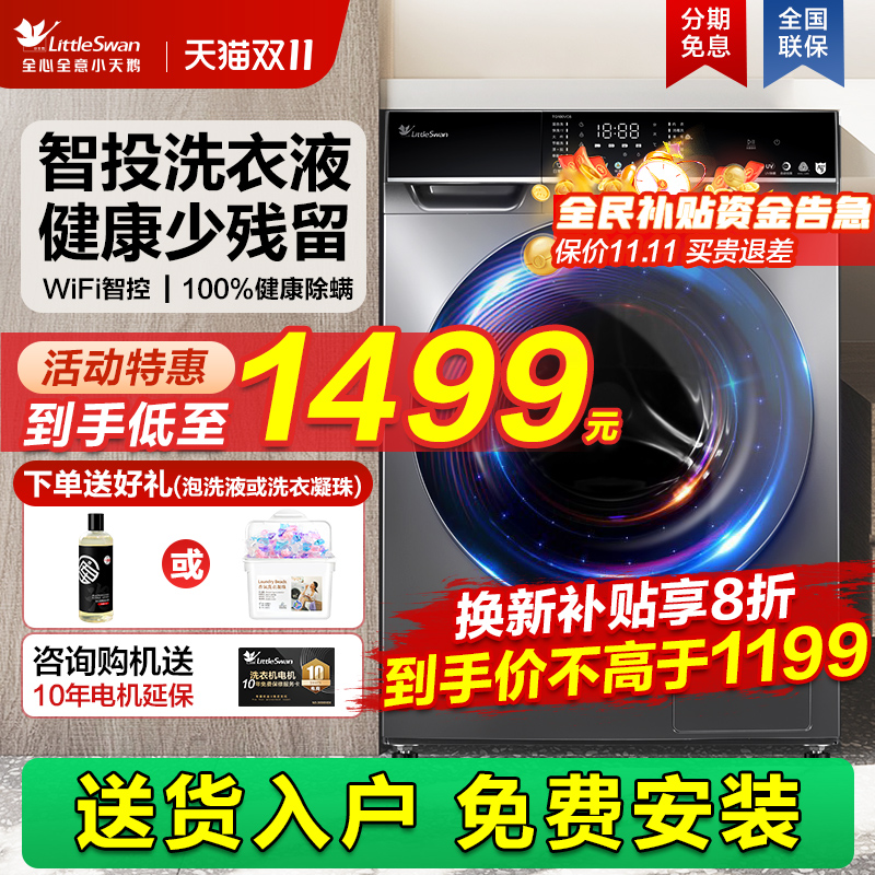换新补贴小天鹅滚筒洗衣机全自动家用10公斤kg智能投放官方旗舰店