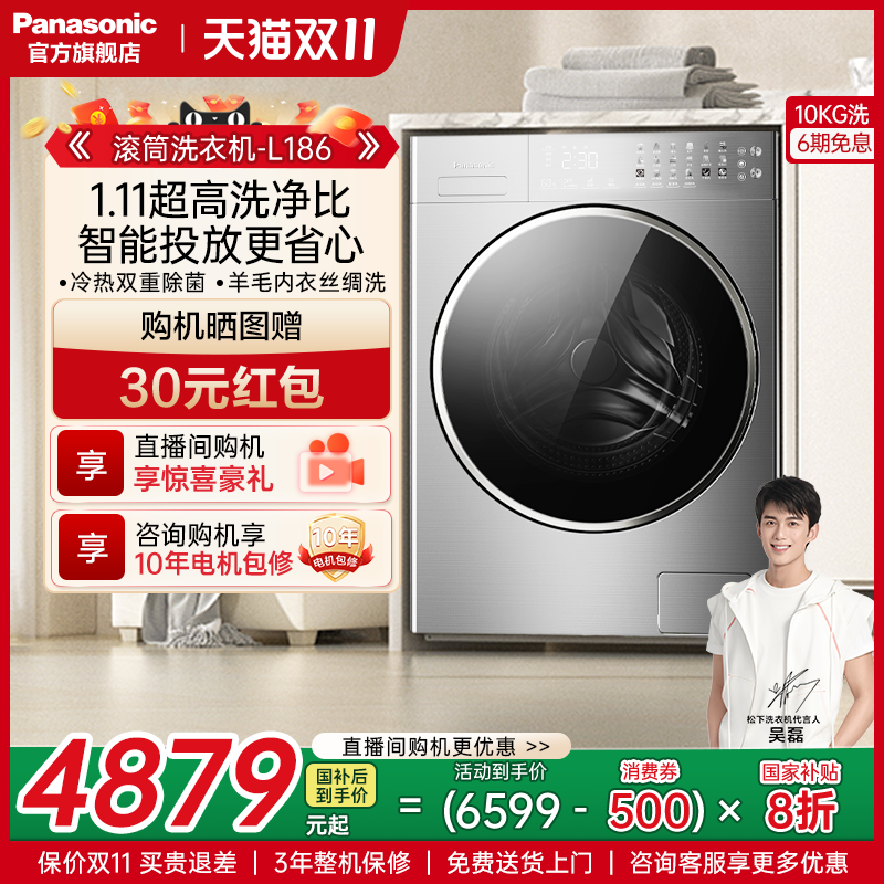 [以旧换新补贴]松下10公斤滚筒洗衣机全自动家用智能远程智控L186