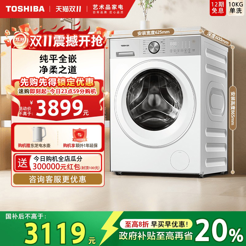 [国补不限地域]东芝10KG玉兔2.0pro滚筒洗衣机全自动以旧换新T18B