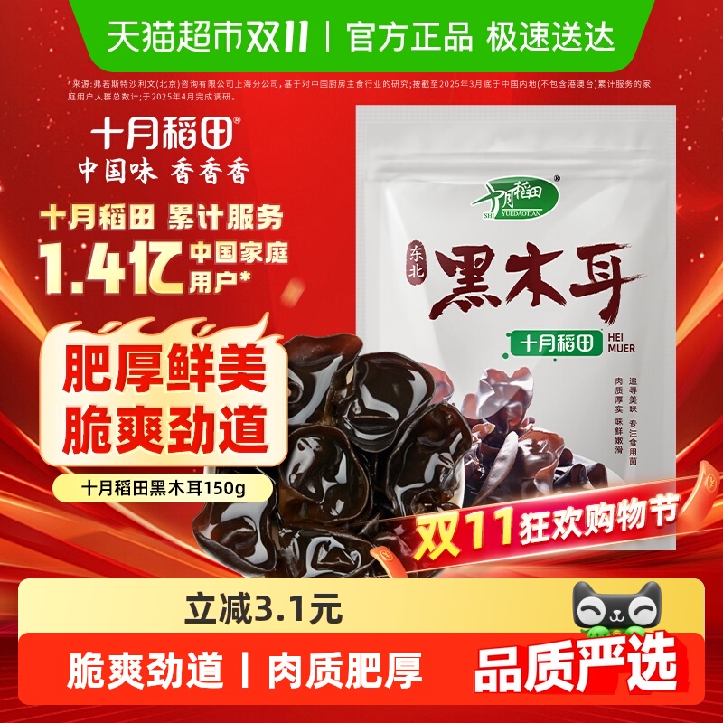 十月稻田东北黑木耳150g高泡发率肉质肥厚脆爽凉拌菜火锅炒菜旗舰