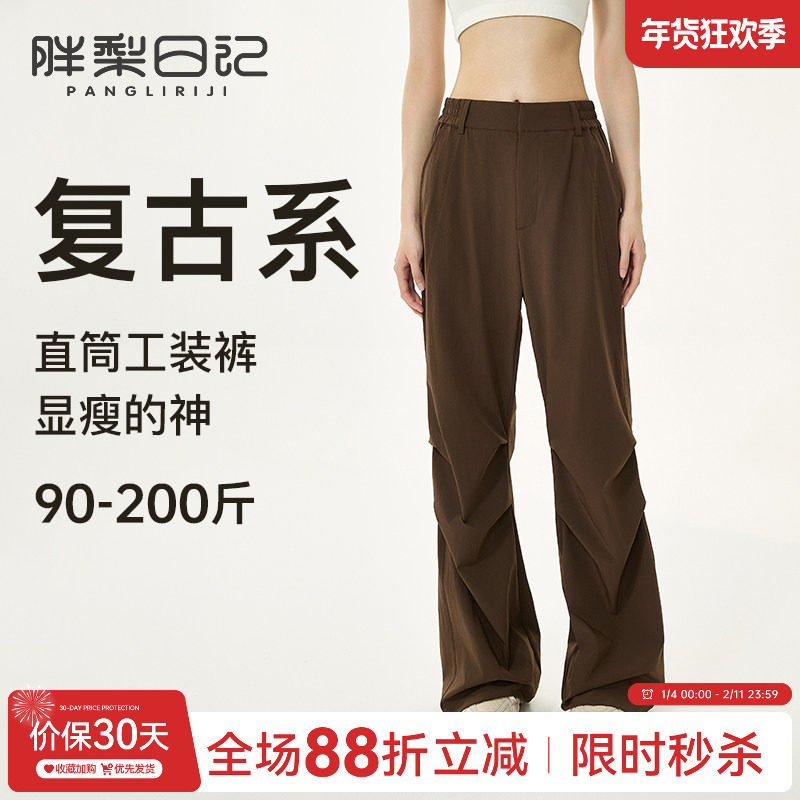 梨型身材裤子女秋冬大码胖mm休闲直筒垂感阔腿长裤高腰显瘦西装裤