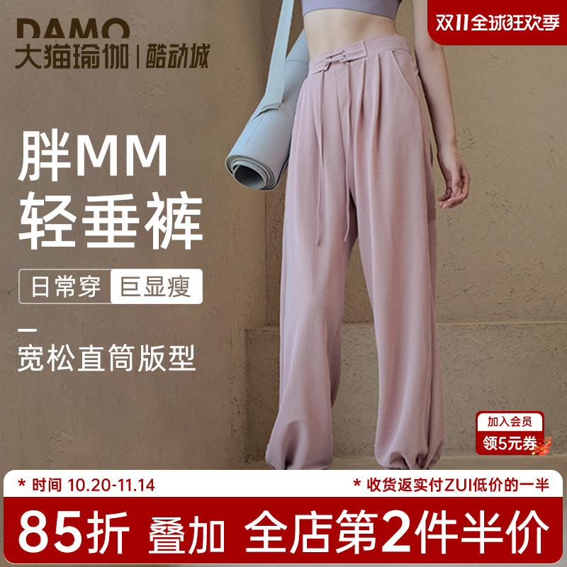 大码胖MM垂感女宽松跑步健身速干瑜伽休闲运动卫裤阔腿拼色长裤秋