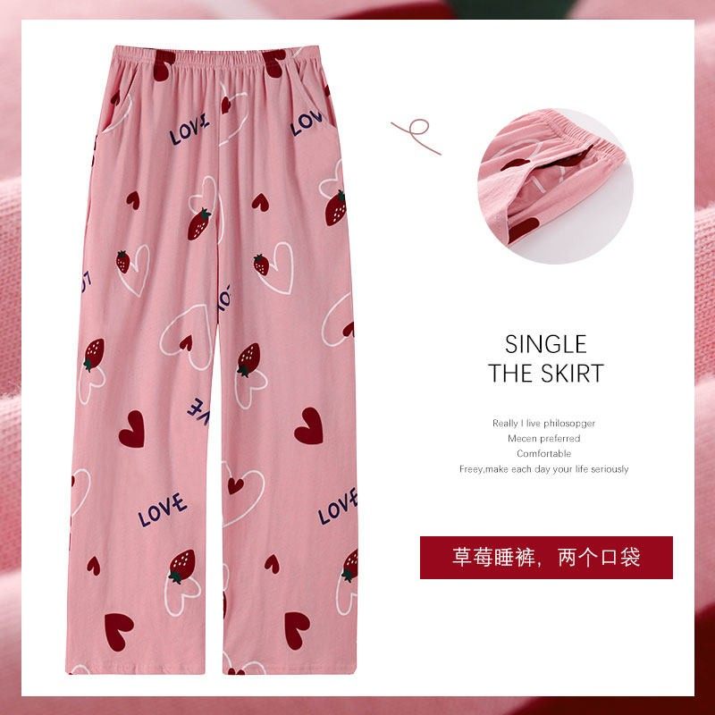 大码睡裤女夏季纯棉长裤宽松胖mm200斤可爱居家休闲全棉家居裤女
