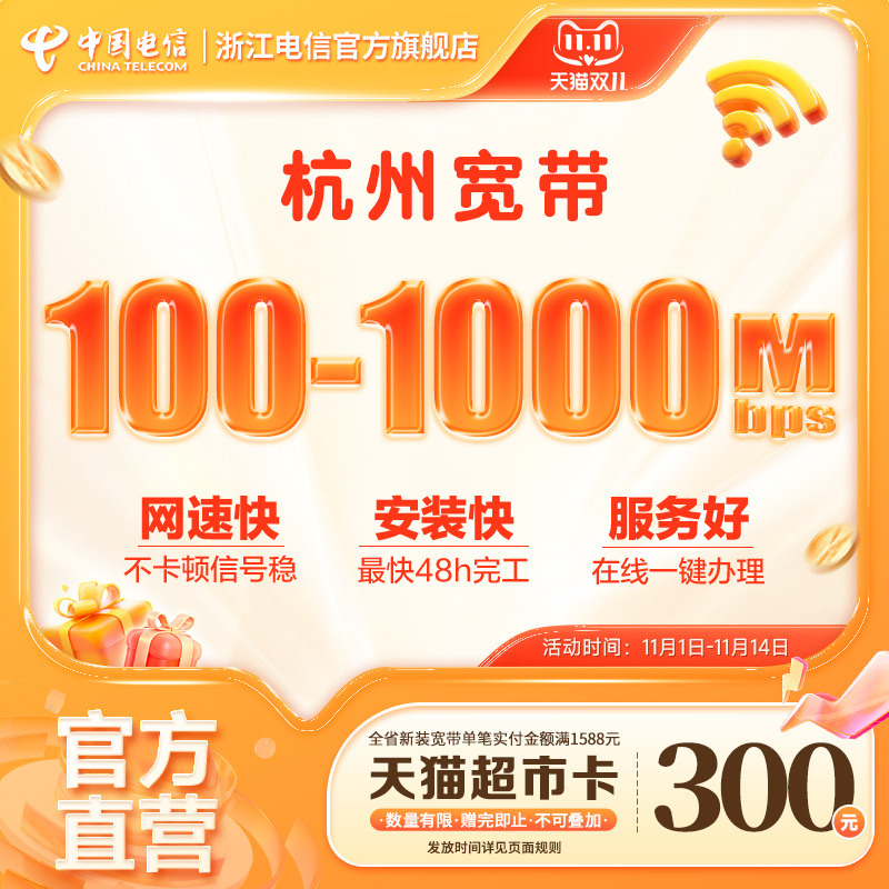 官方旗舰店杭州浙江中国电信宽带办理新装续费包年上网套餐1000M