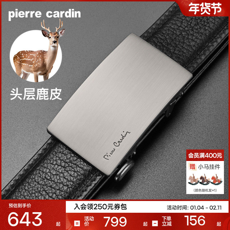 【鹿皮】皮尔卡丹内扣式皮带男真皮奢侈商务腰带礼物正品男士裤带