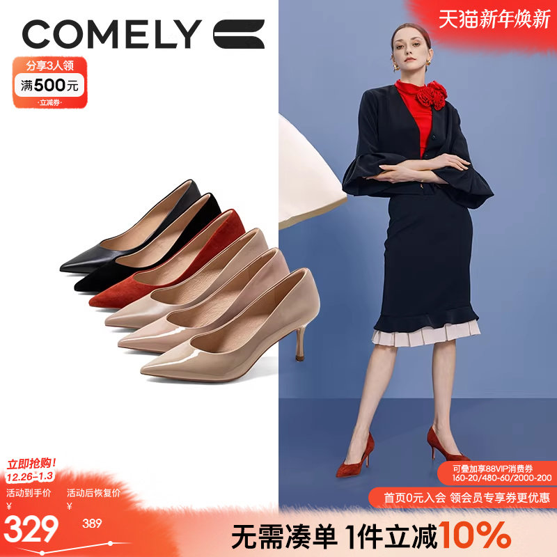 红蜻蜓高跟鞋2025冬季新款真皮女鞋尖头洋气妈妈鞋子细跟女士皮鞋
