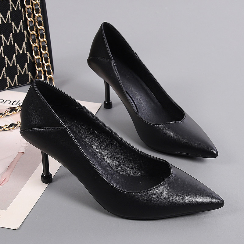 2025春季新款真皮高跟鞋细跟工作鞋百搭尖头女鞋头层牛皮单鞋浅口