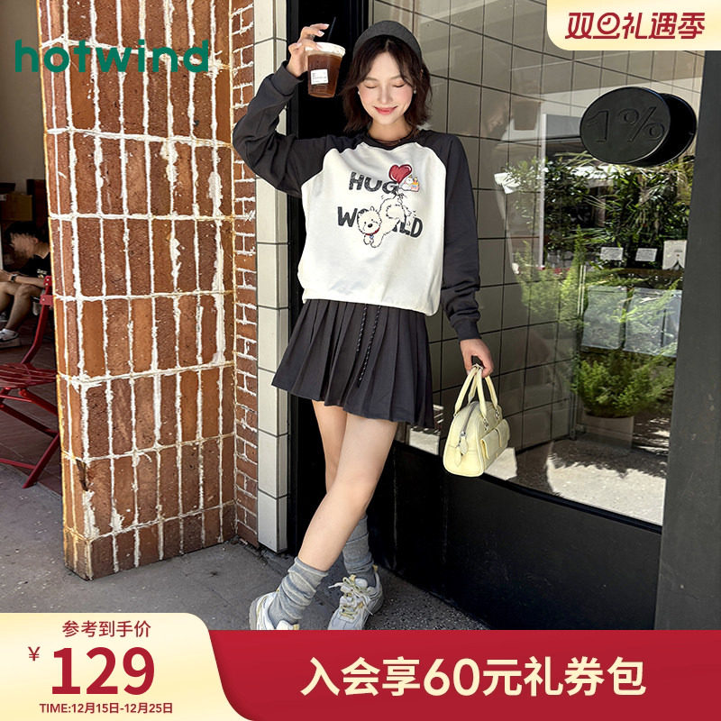 热风女士卡通印花卫衣2025年秋季新款萌宠撞色元气少女插肩袖卫衣