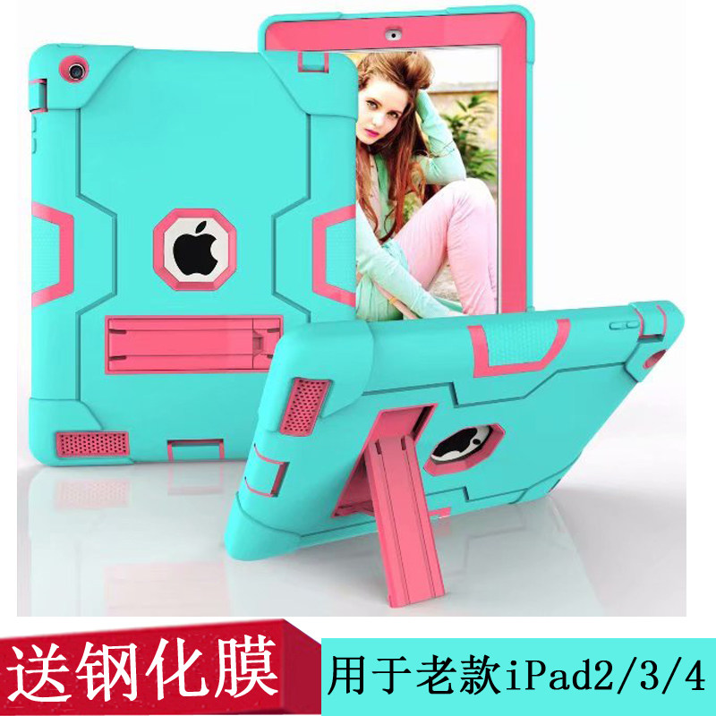 适用iPad2保护套苹果iPad4平板保护壳ipad3全包防摔ipad4代老款第四代pad2代电脑ipada1458三折234第二代硅胶