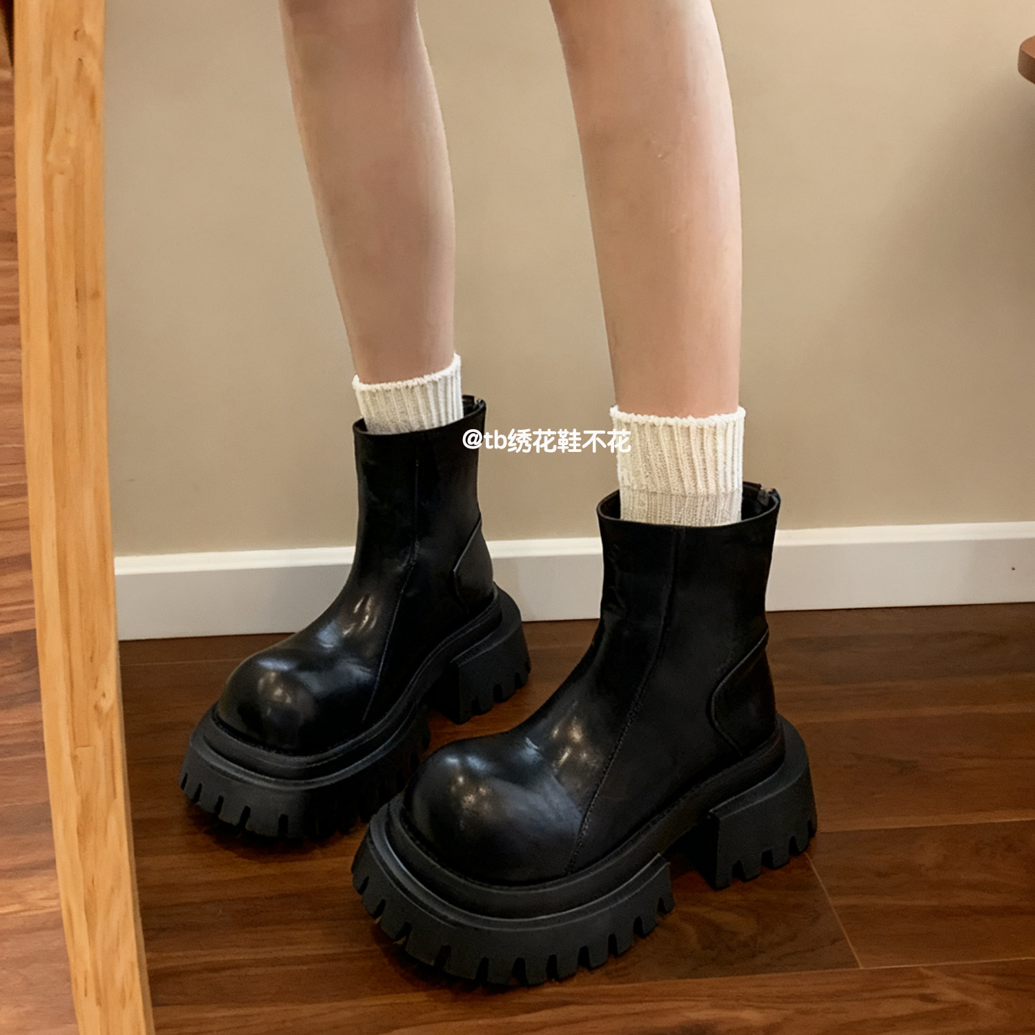 韩国ulzzang厚底粗跟切尔西靴女短靴黑色瘦瘦靴马丁靴后拉链简约