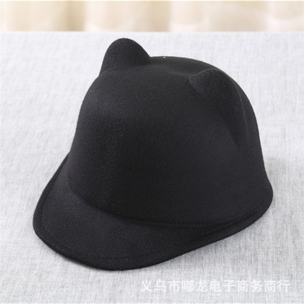 秋冬复古毛呢礼帽 女韩版小恶魔猫耳朵马术帽子 英伦亲子圆顶潮帽
