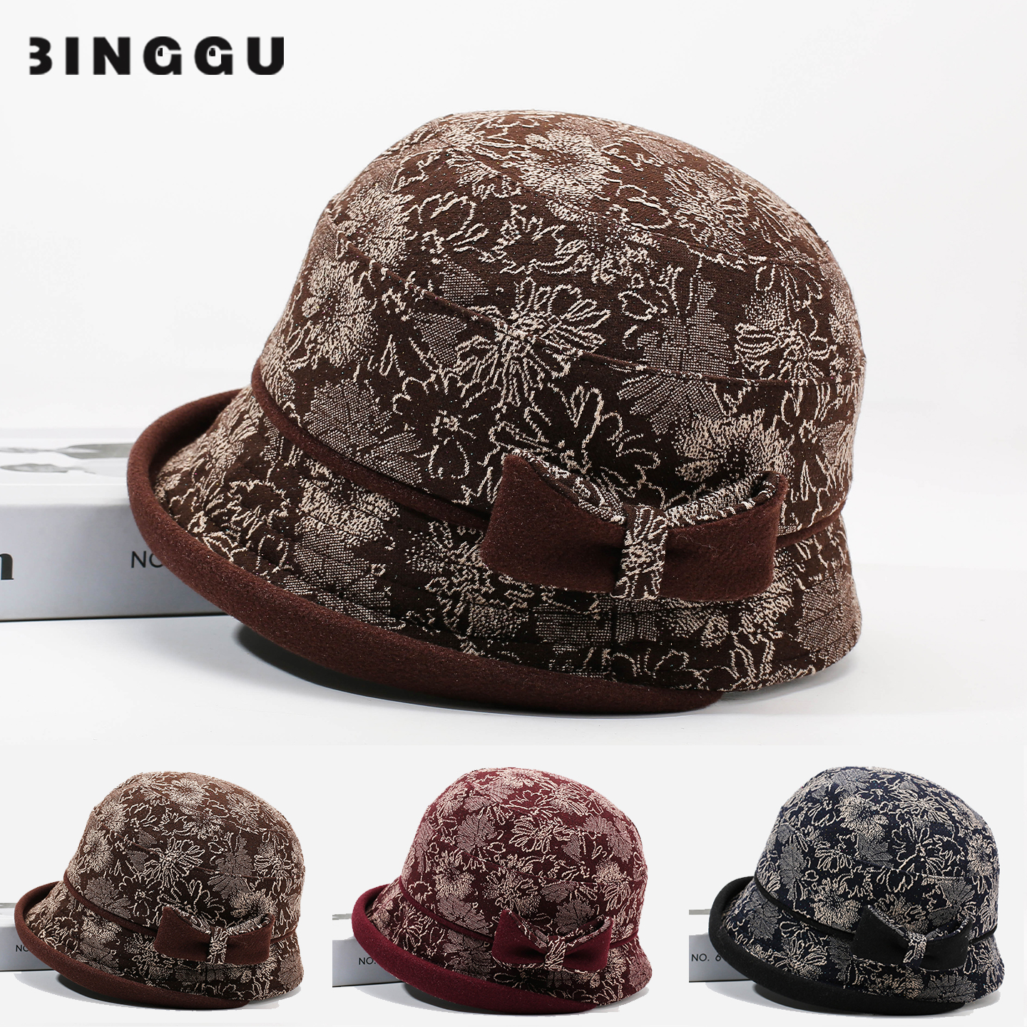 羊毛帽子女秋冬韩版优雅卷边蝴蝶结名媛礼帽妈妈英伦复古毛呢盆帽