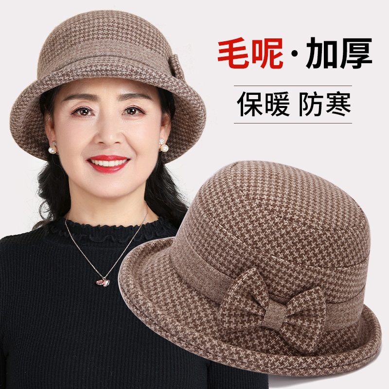 秋冬季中老年人帽子女妈妈盆帽加厚保暖羊毛呢礼帽冬天婆婆奶奶帽