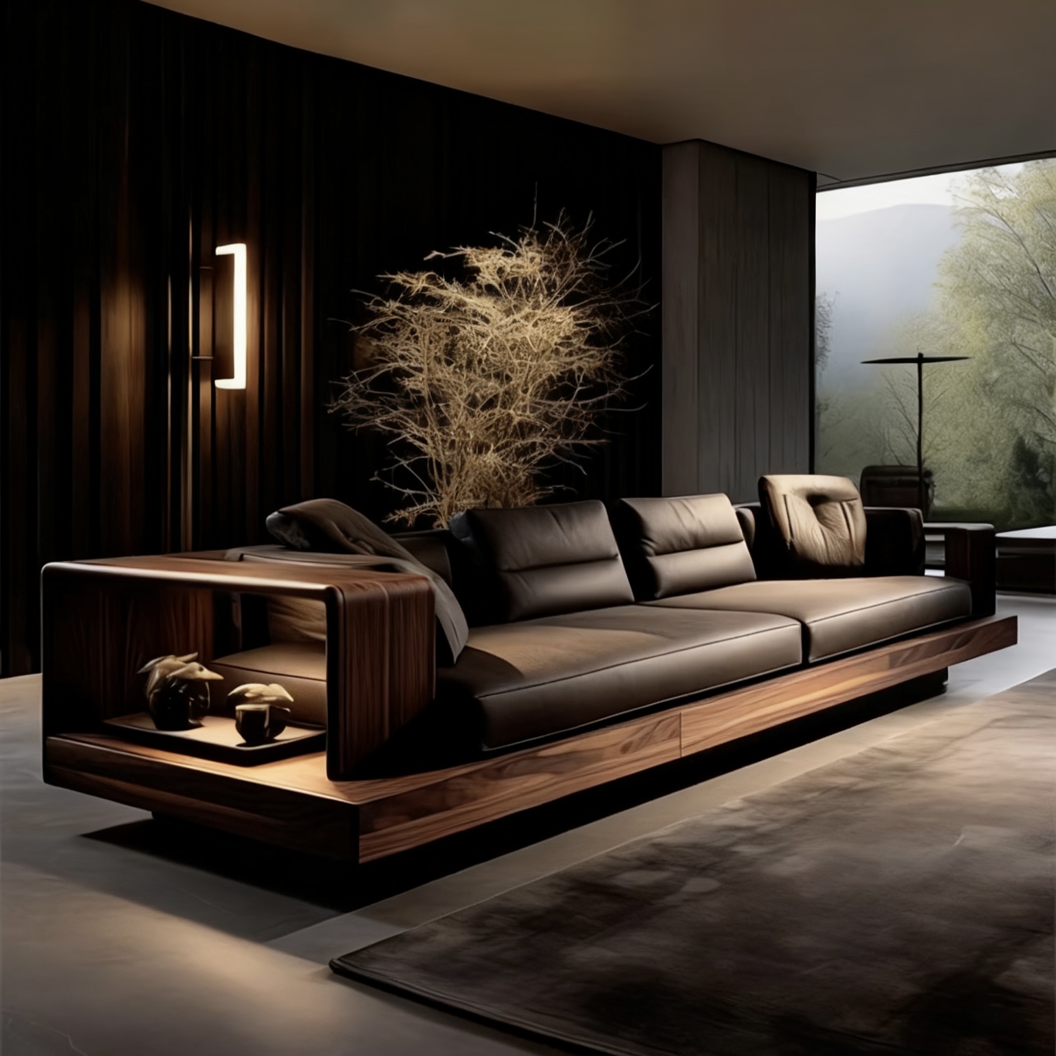 宋式美学北美黑胡桃木沙发组合现代简约高品质家具新中式实木沙发