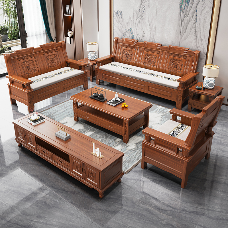 新中式实木沙发组合现代简约家用三人位四人位小户型客厅沙发家具