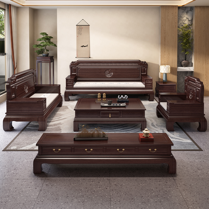 中式花梨木实木沙发组合仿古雕花大户型冬夏两用明清古典红木家具