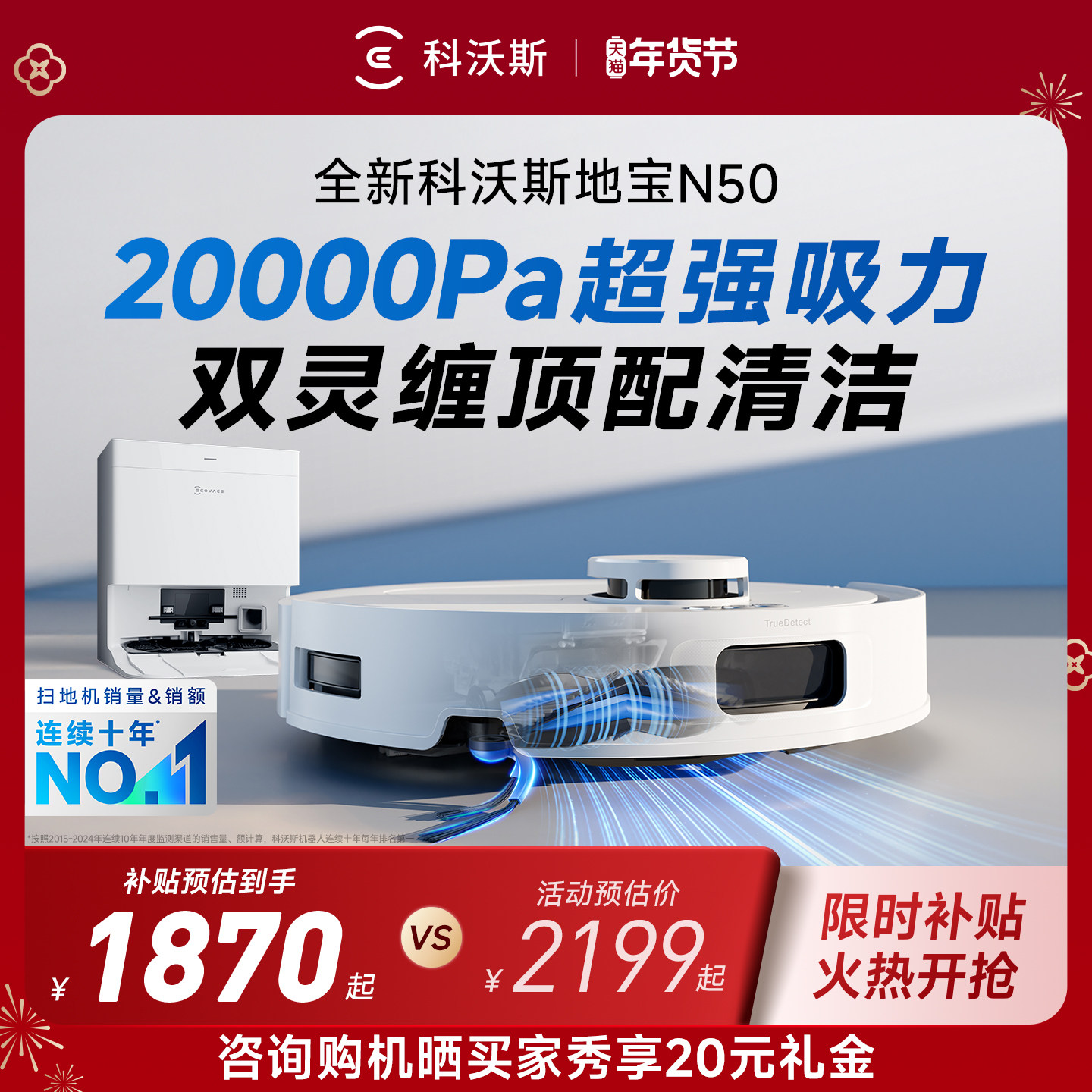 【年货节】科沃斯N20/N20 PRO扫地机器人家用全自动扫拖机