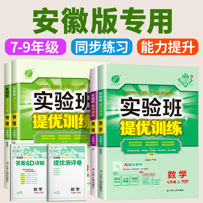 安徽使用实验班提优训练七年级下册数学八年级上册九年级语文英语人教版科学浙教版全套初中训练同步练习册必刷初一初二三