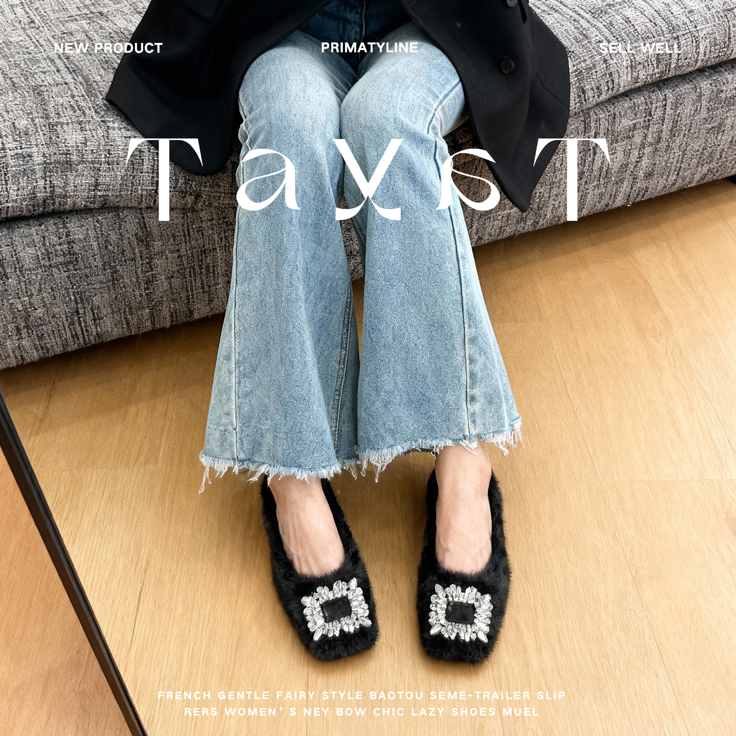 霉霉种草!毛毛鞋女外穿2025年新款一脚蹬软底方扣水钻平底鞋秋冬