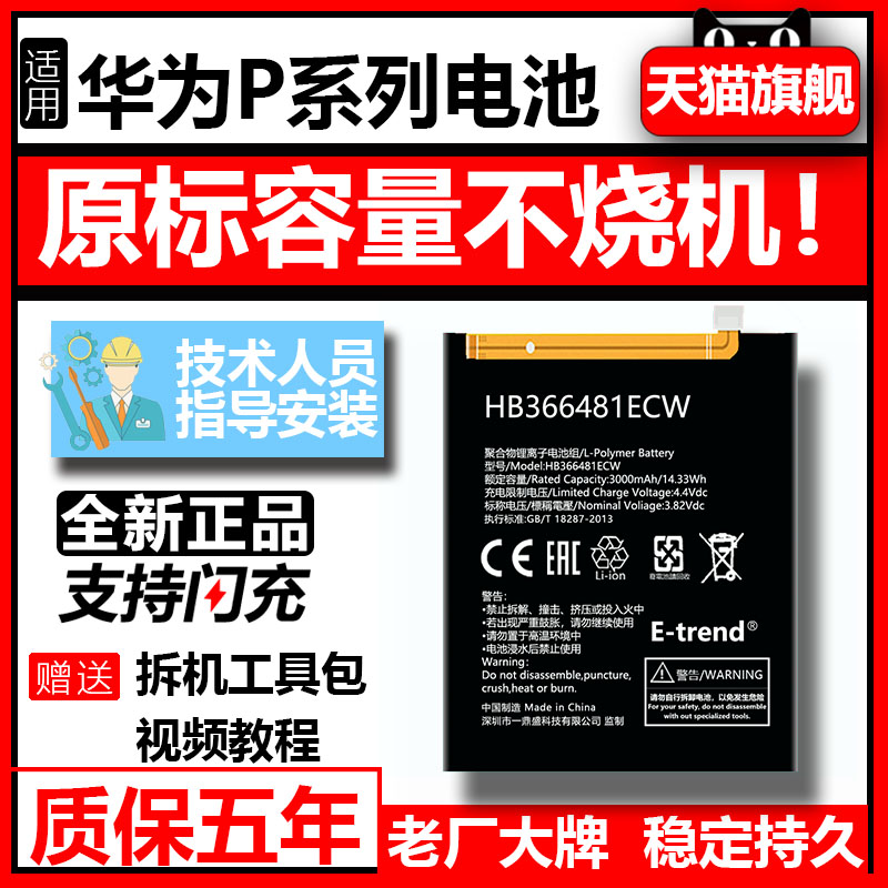 etrend适用华为p9电池p10p8p7p10plus十p6p20大p20pro容量p30pro更换366481手机p40pro电板plus全新386280