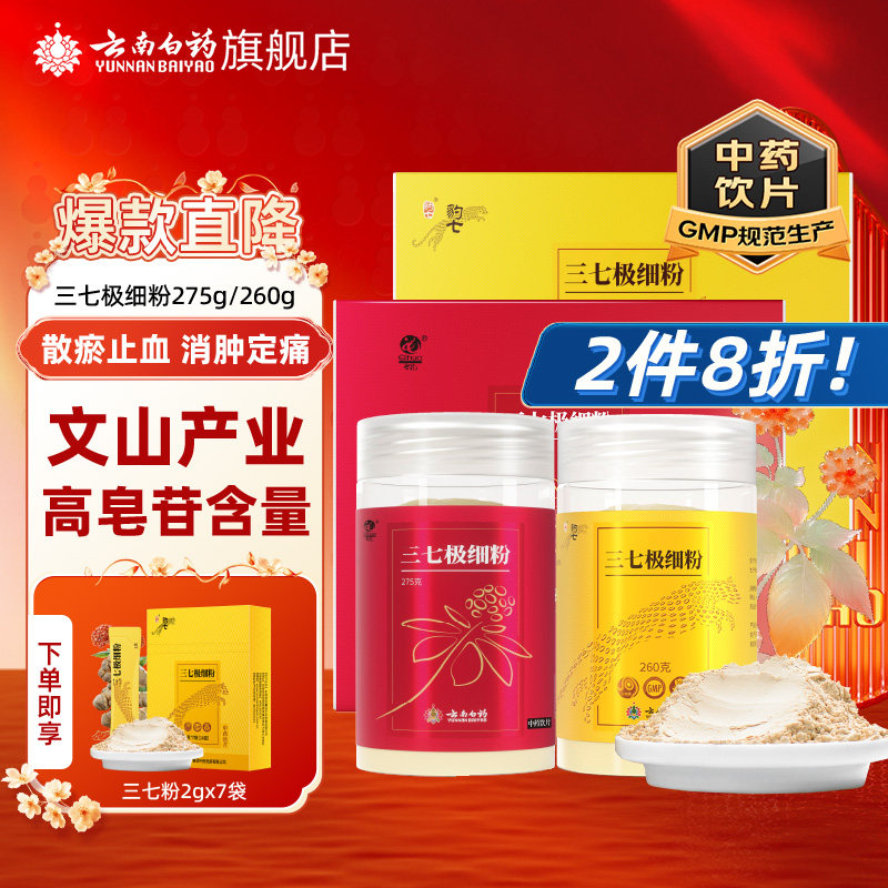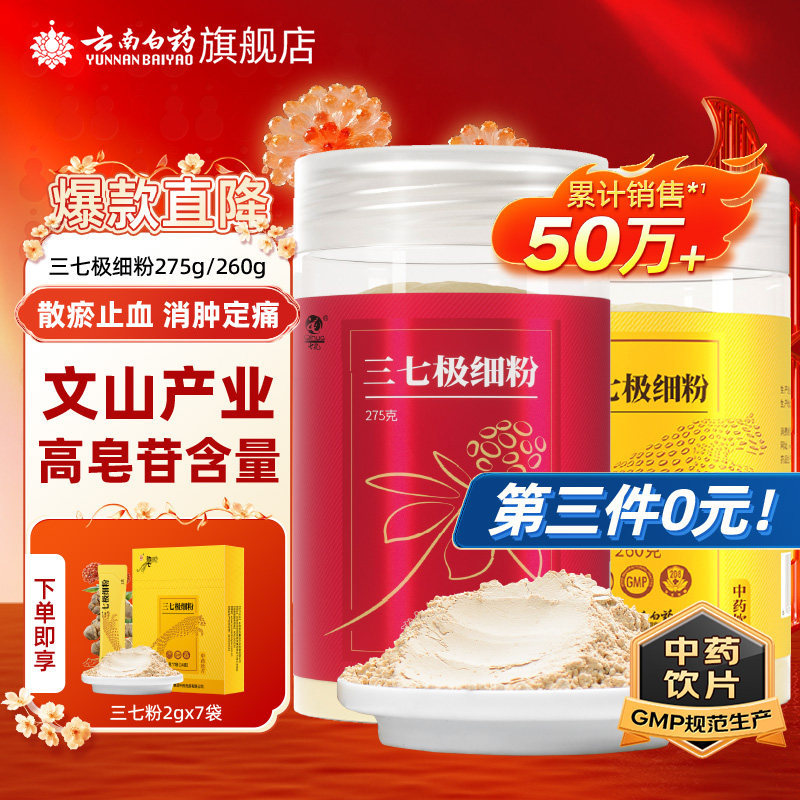 云南白药三七粉正宗云南文山三七头田七中药材打粉正品官方旗舰店
