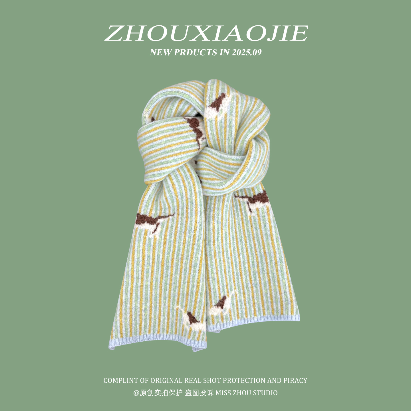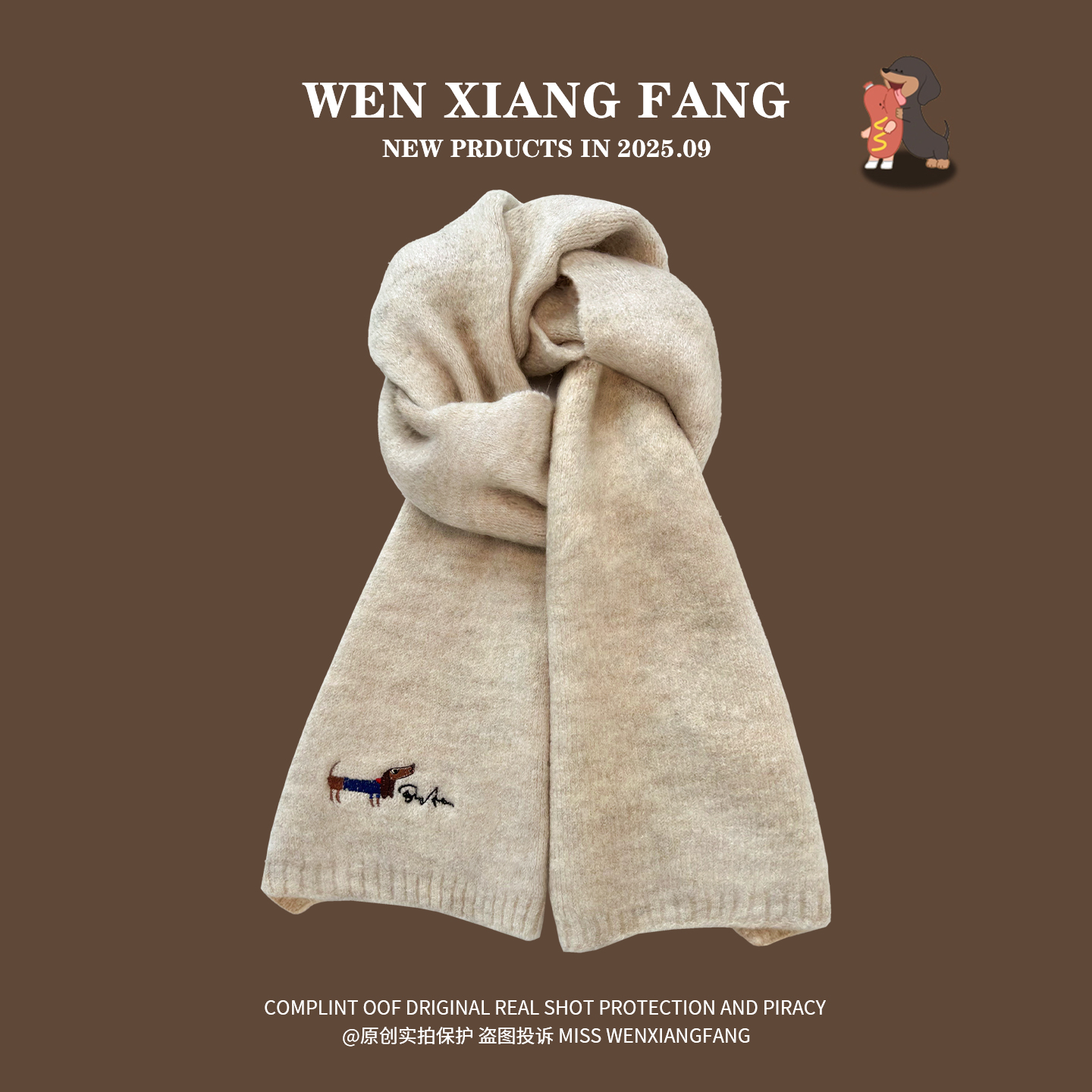 韩系氛围感小狗刺绣含羊绒围巾女2025新款秋冬季保暖针织毛线围脖