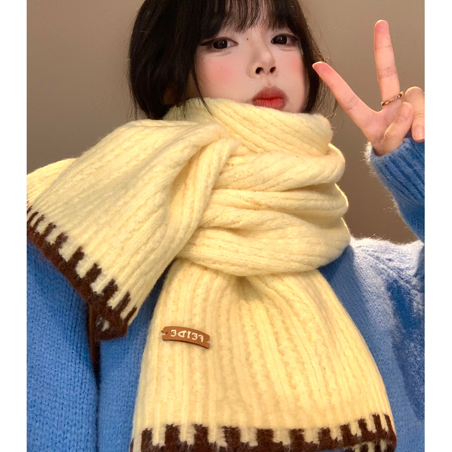 Himade韩版百搭针织毛线围巾女秋冬季防寒保暖情侣纯色高级感围脖