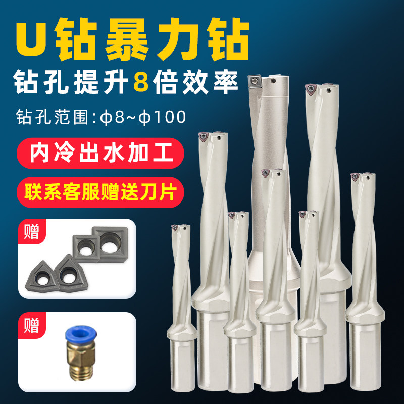 U钻刀杆暴力钻快速喷水钻头WC刀片刀柄平底数控打深孔进口模具钢