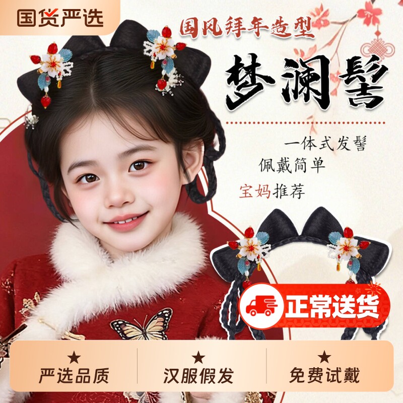 女童明制汉服假发古风一体式假发包发髻造型古装日常盘发新年头饰