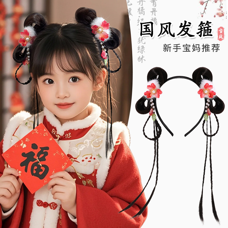 儿童汉服头饰发髻女童古装小蒹葭假发包古风盘发造型假发辫子发箍
