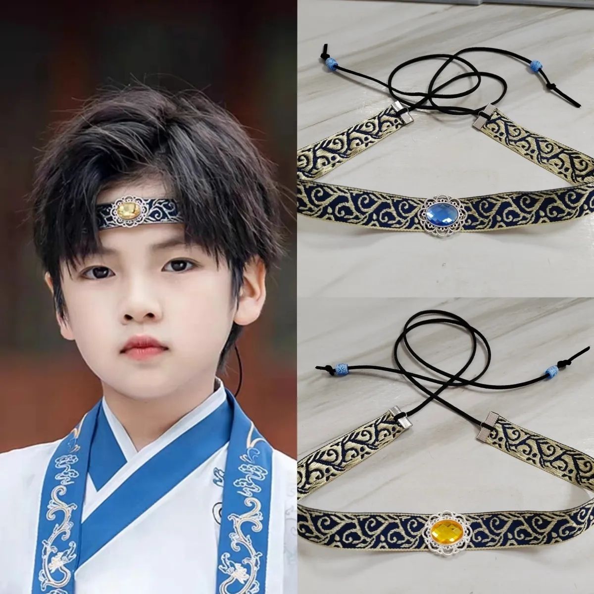 男童古装天蓝色发带抹额汉服头带古装头饰眉心眉头男额头公子古风