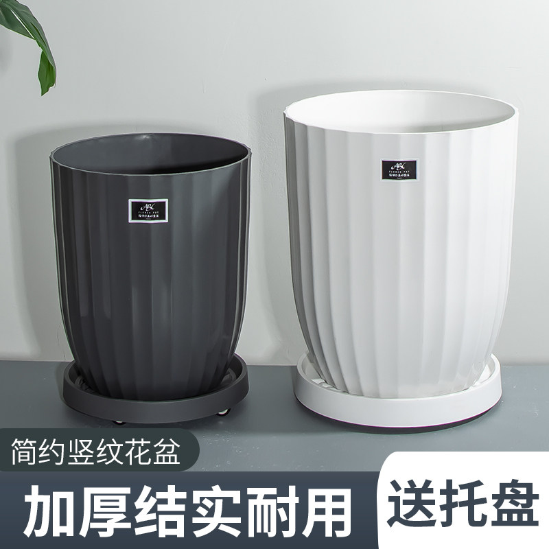 经典竖纹花盆特大号金钱树盆加厚小花盆阳台月季玫瑰树脂塑料花盆