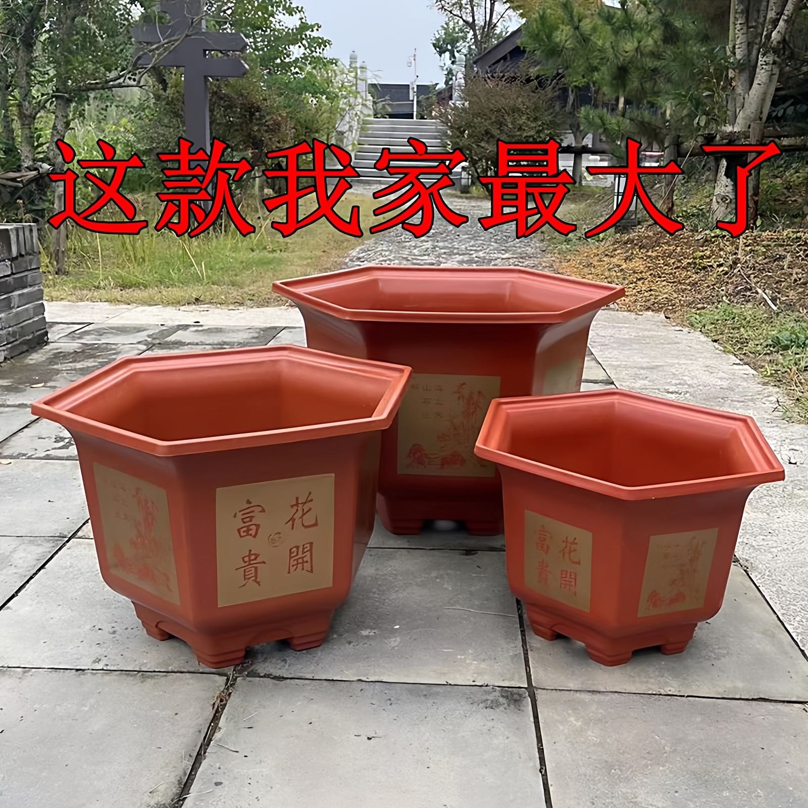 户外庭院加厚仿陶瓷六角大号花盆种树金钱树桂花树脂塑料花盆耐用