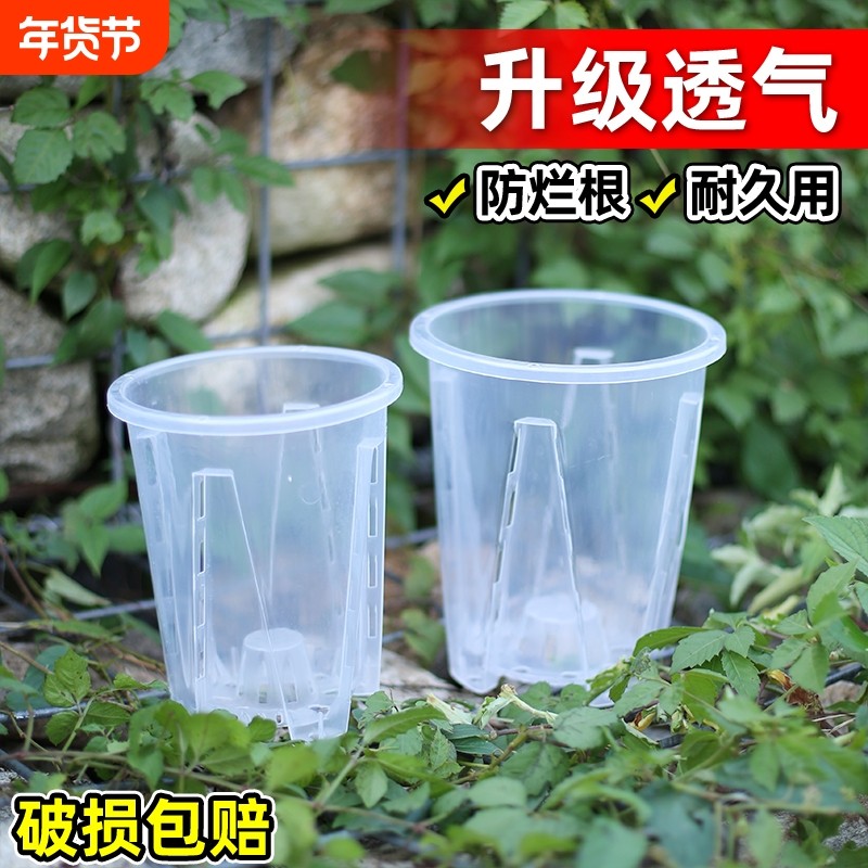 大号透气控根透明兰花种植盆加厚耐用环保树脂塑料花盆镂空带托盘